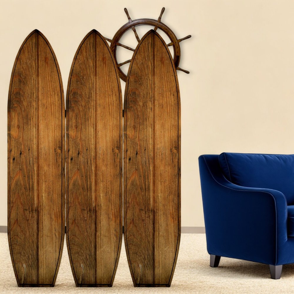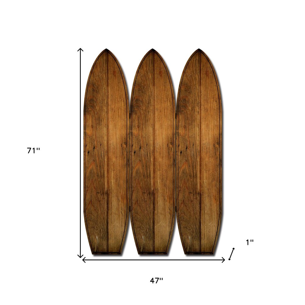 71" Brown Solid Wood Folding Three Panel Screen Room Divider