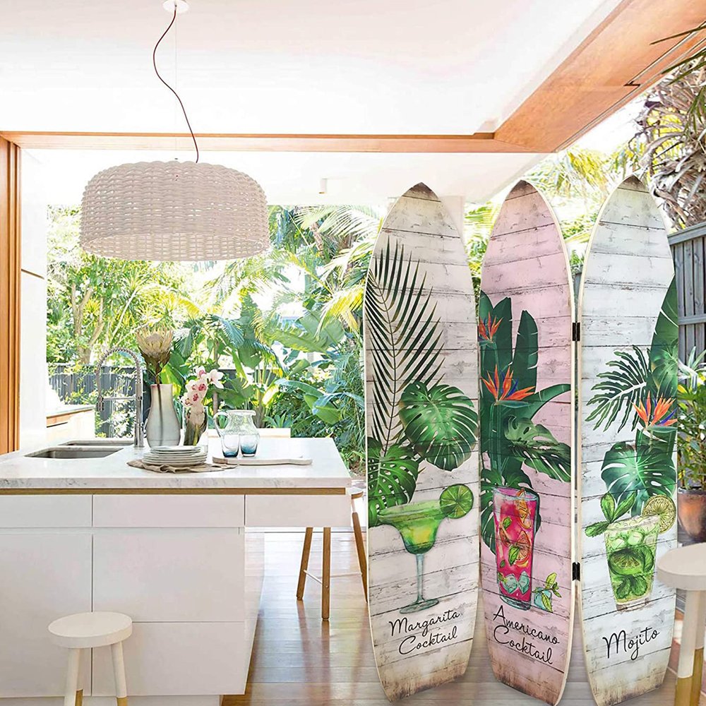 71" Green Solid Wood Folding Three Panel Screen Room Divider