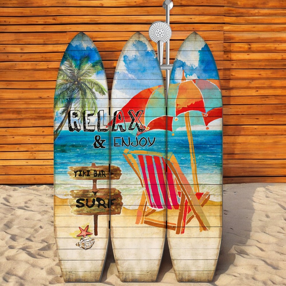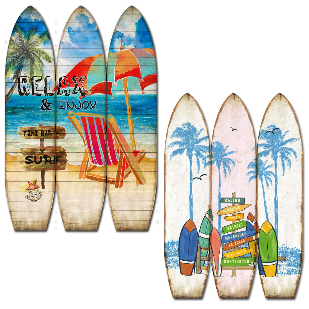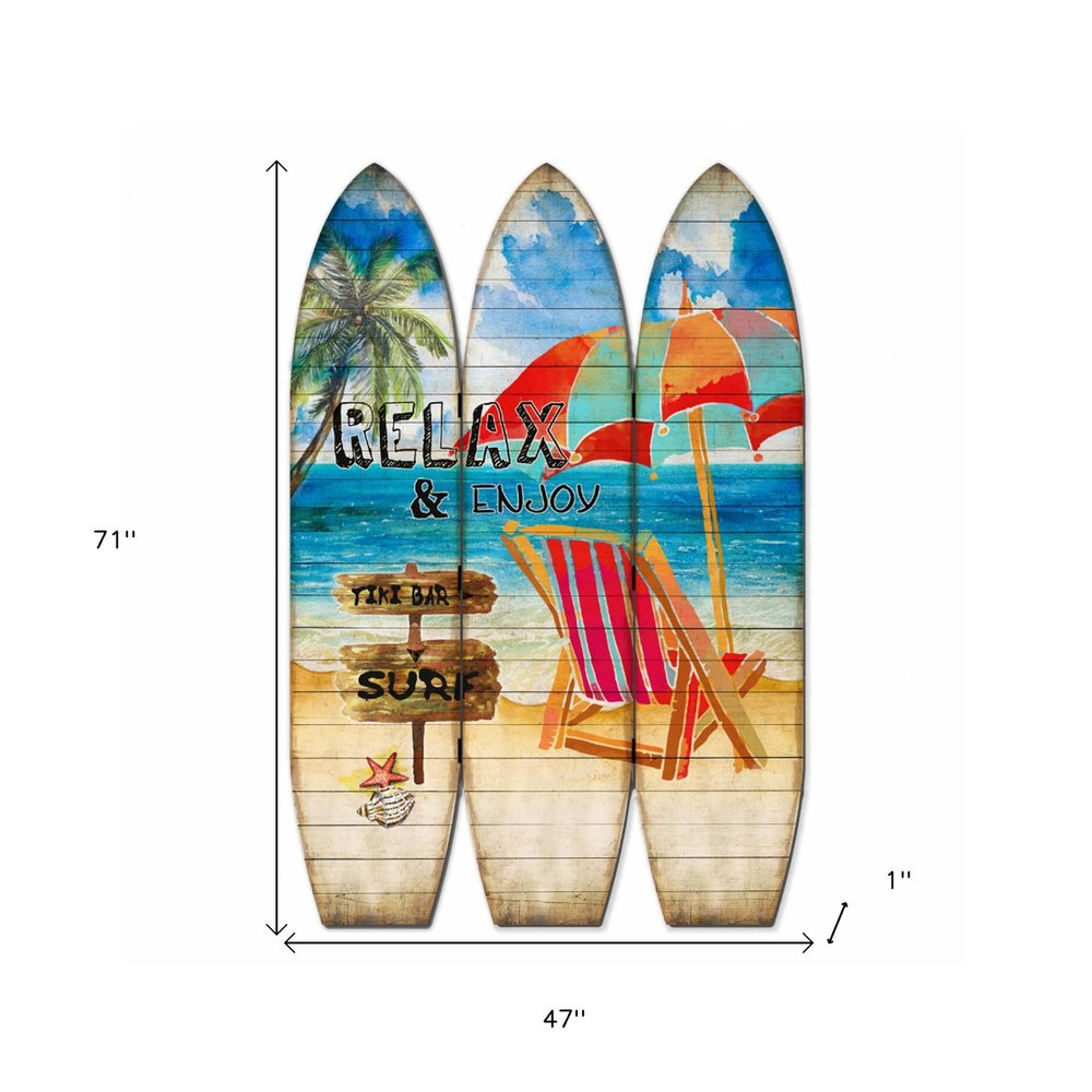 71" Blue and Beige Solid Wood Folding Three Panel Screen Room Divider