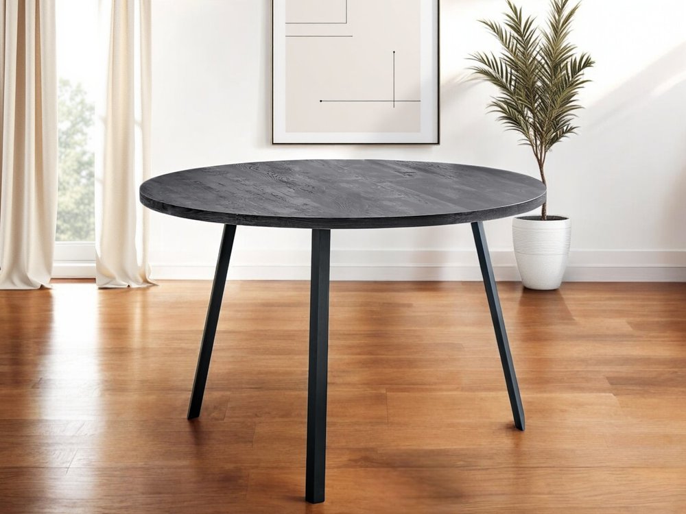 47" Gray And Black Rounded Metal Three Leg Base Dining Table