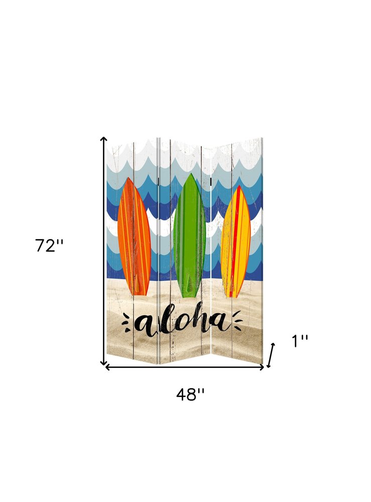 72" Blue and White Canvas Folding Three Panel Screen Room Divider