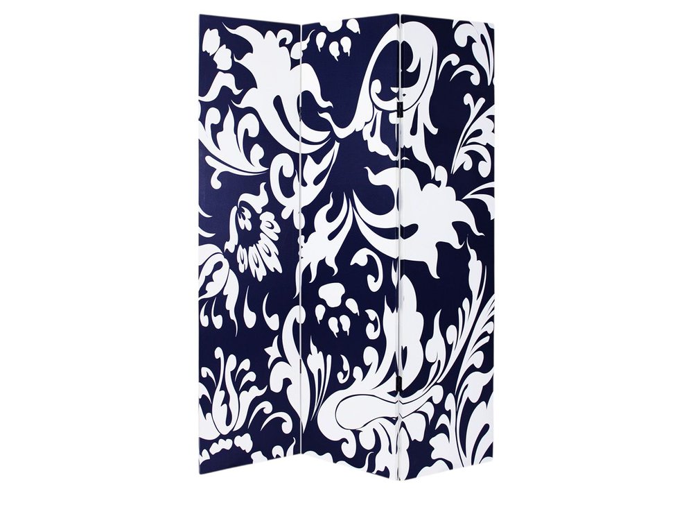 72" Black And White Canvas Folding Three Panel Screen Room Divider