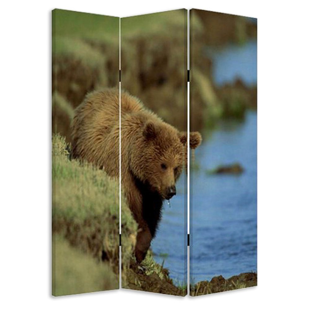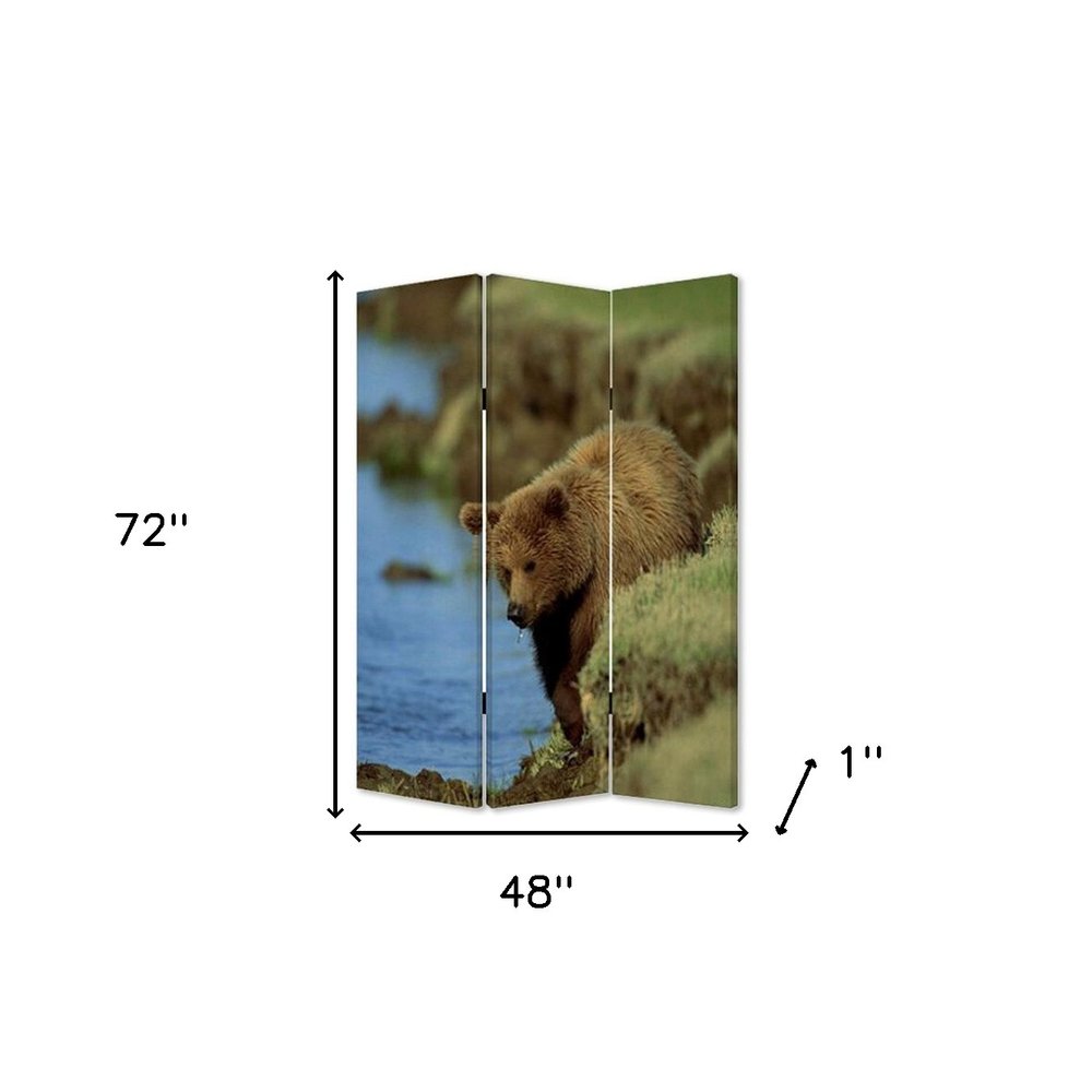 48" X 72" Multi Color Wood Canvas Bear Screen