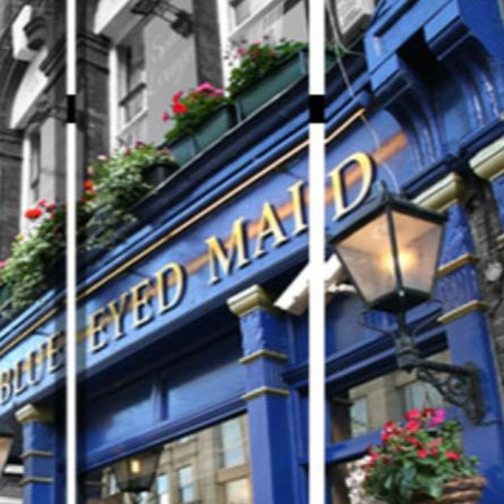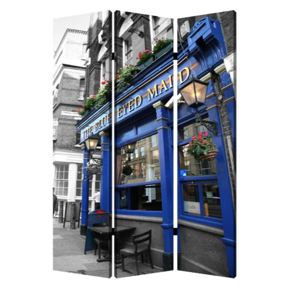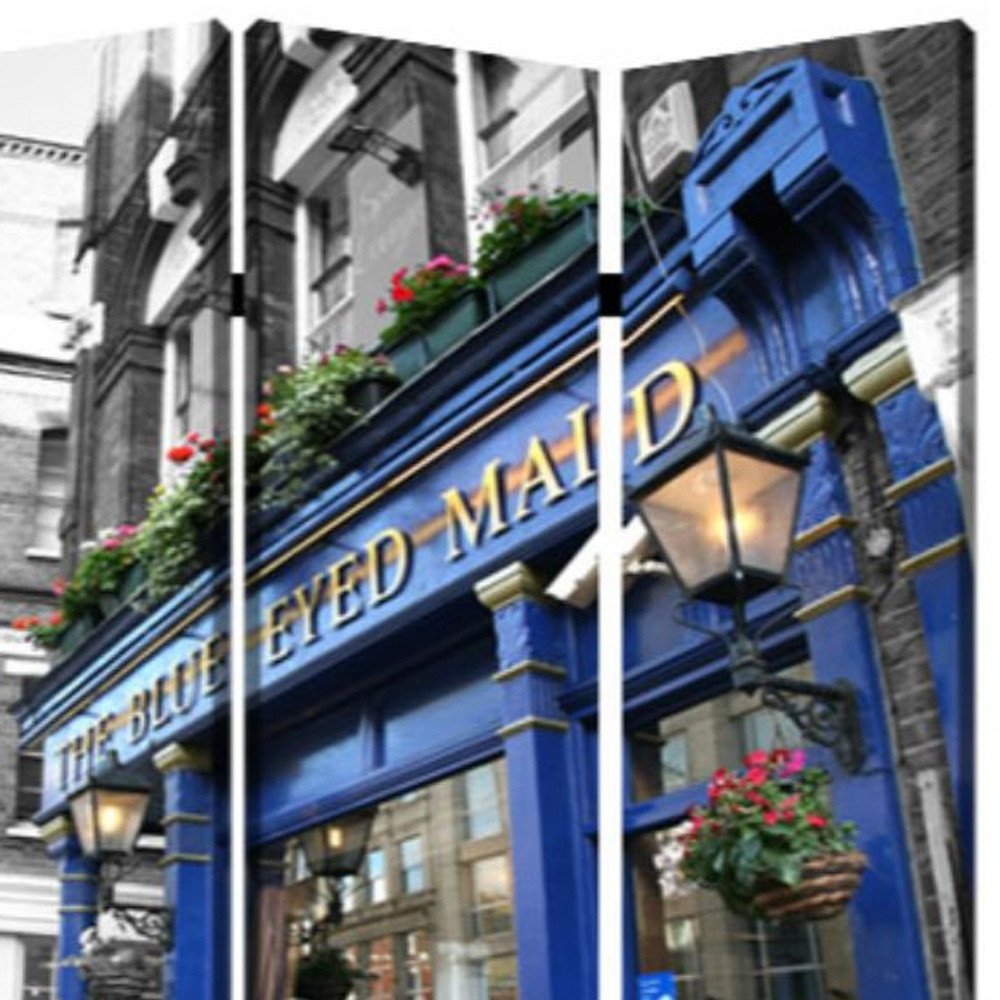 72" Blue And Gray Canvas Folding Three Panel Screen Room Divider
