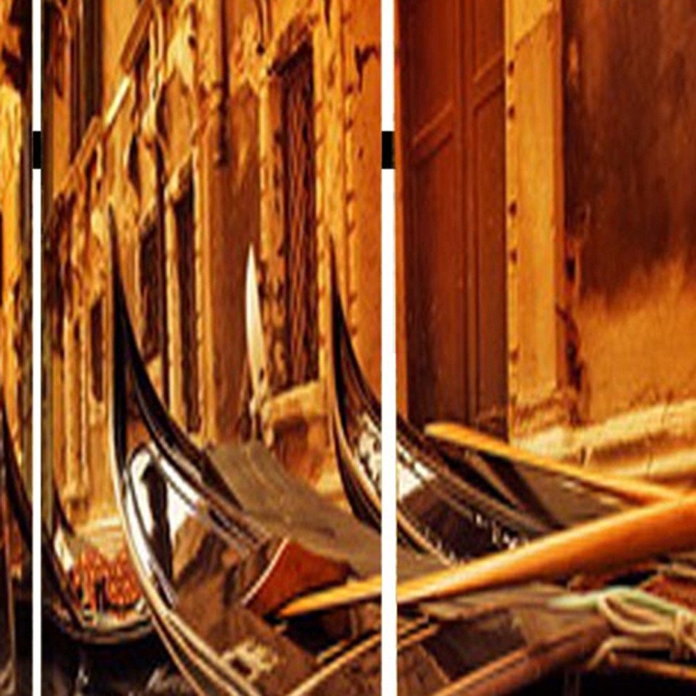 72" Brown Canvas Folding Three Panel Screen Room Divider