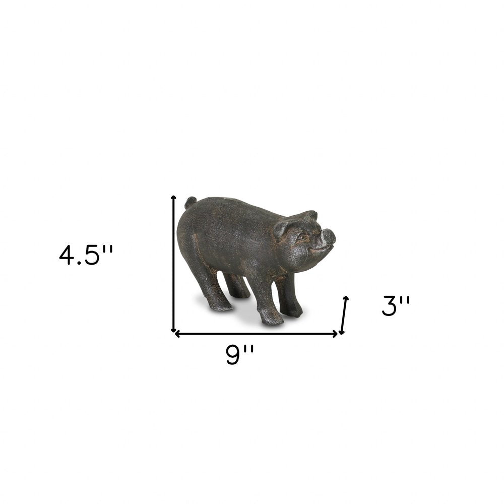 5" Black Cast Iron Pig Hand Painted Sculpture