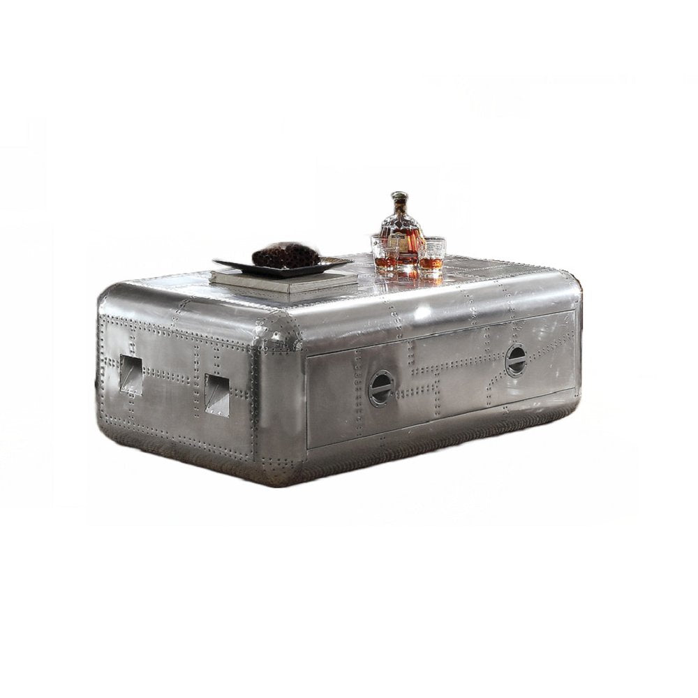 52" Silver Aluminum Solid Coffee Table With Drawer