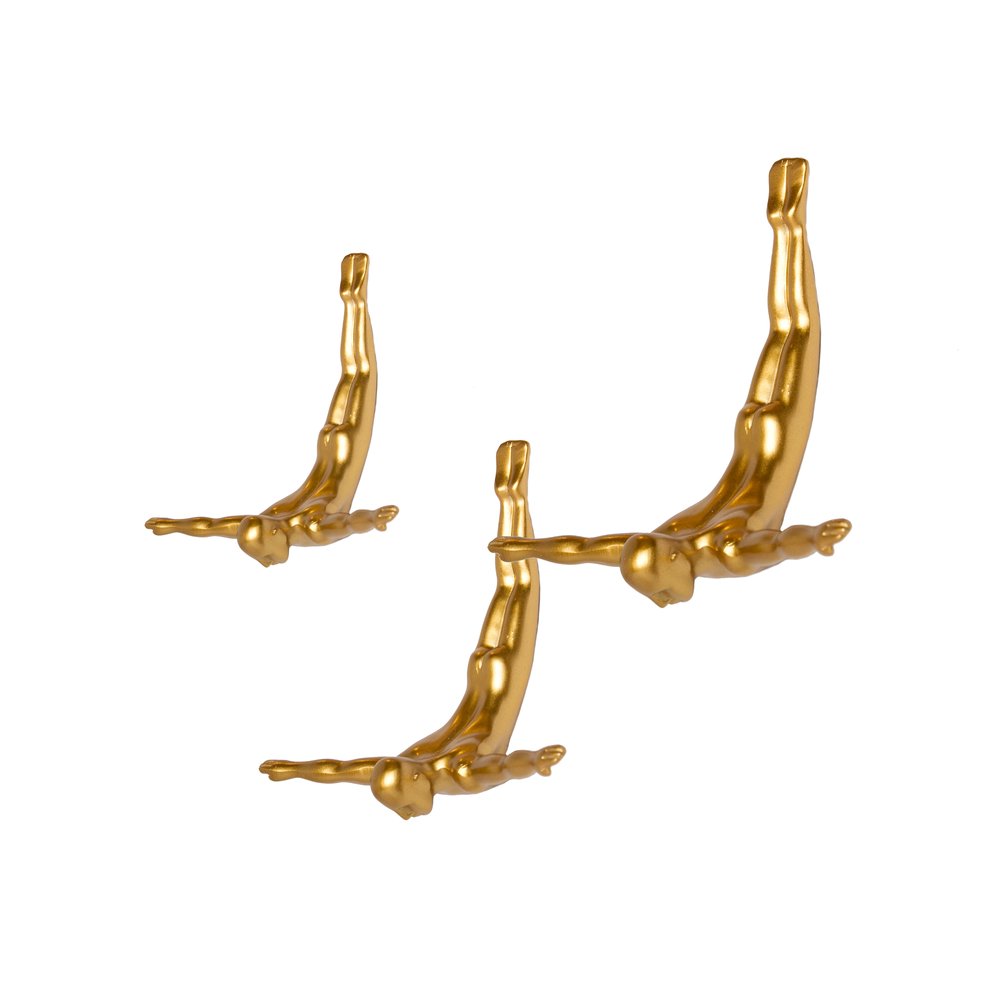 Set of Three Black Resin Diving Man Hanging Dimensional Sculpture