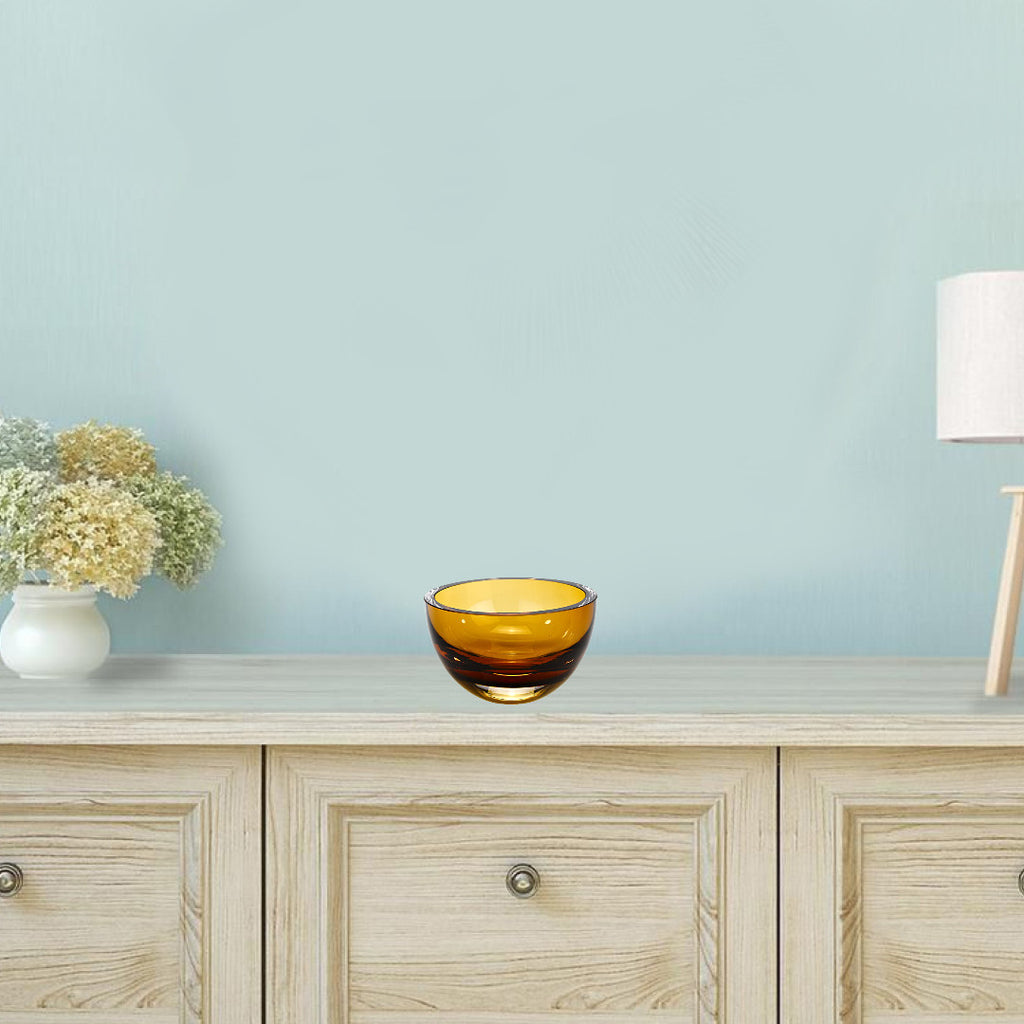 6" Amber Mouth Blown Crystal Thick Walled Bowl