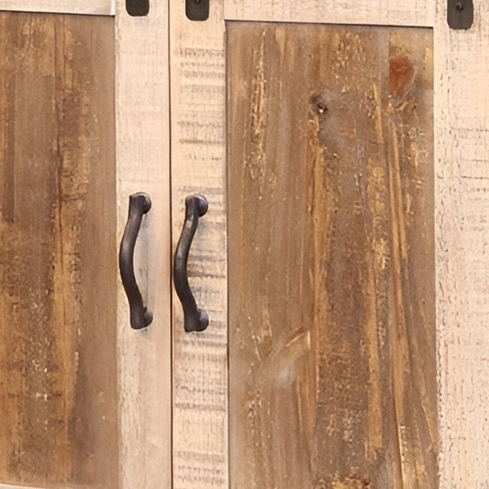 60" Brown Solid Wood Cabinet Enclosed Storage Distressed TV Stand