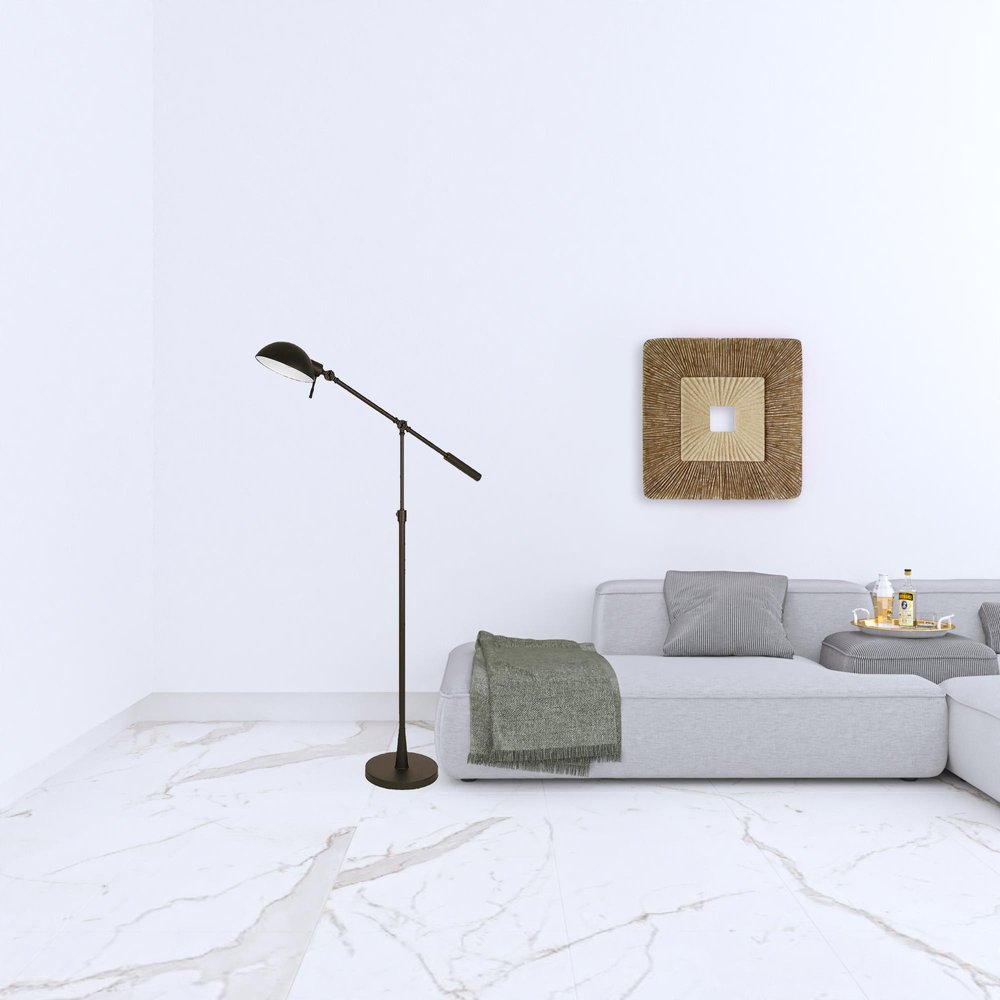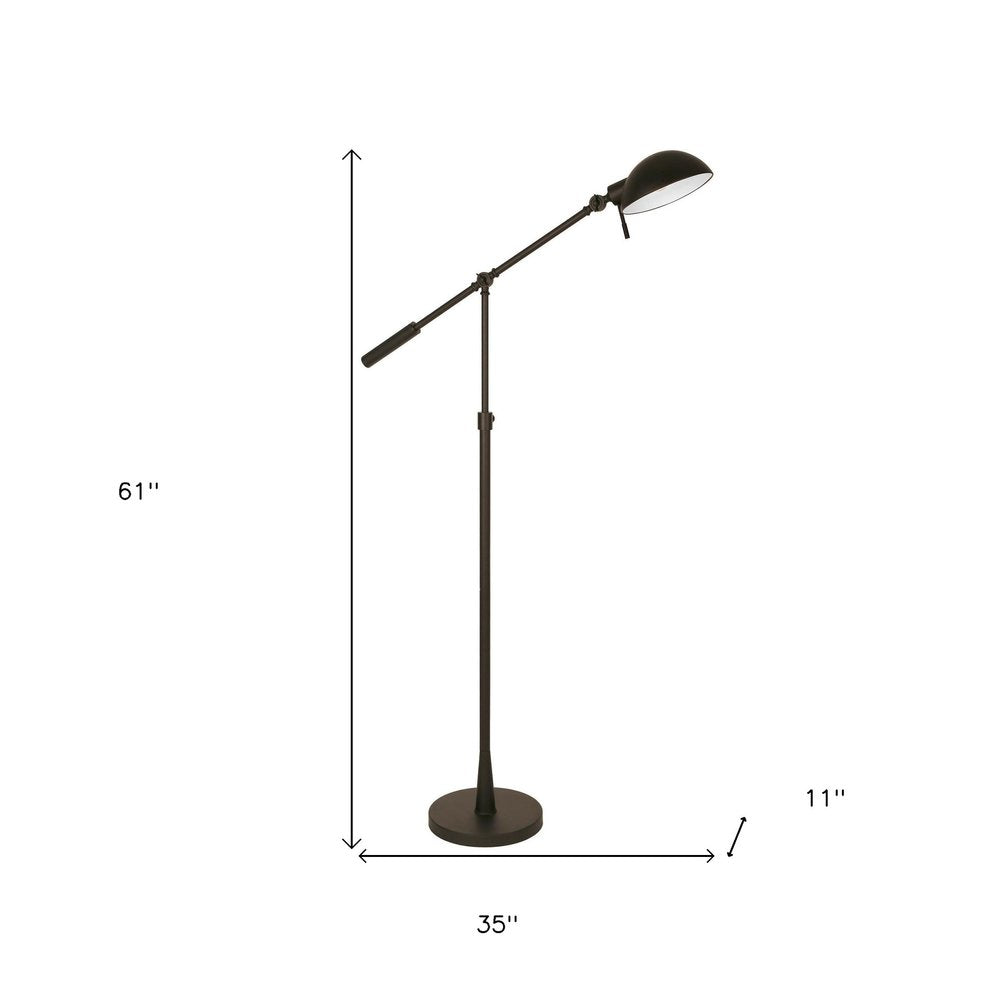 61" Black Adjustable Swing Arm Floor Lamp With Black Cone Shade