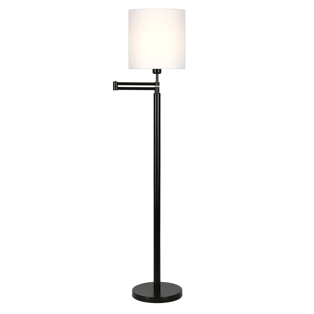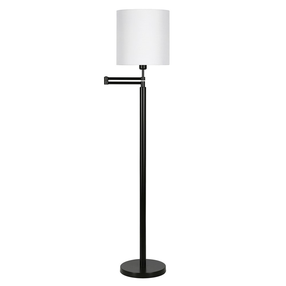62" Black Swing Arm Floor Lamp With White Frosted Glass Drum Shade
