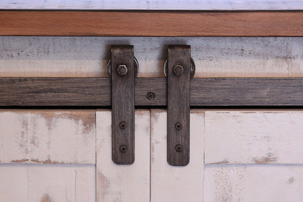 79" White Solid Wood Cabinet Enclosed Storage Distressed TV Stand