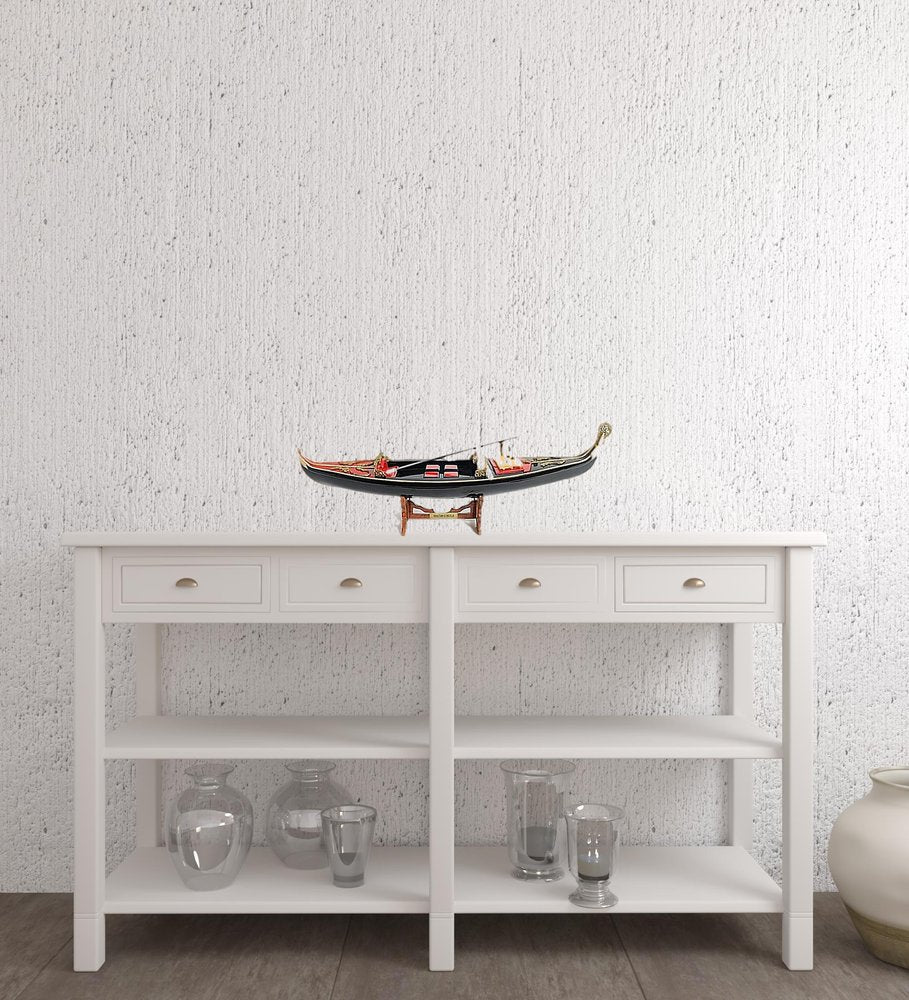 8" Black and Red Venetian Gondola Hand Painted Decorative Boat