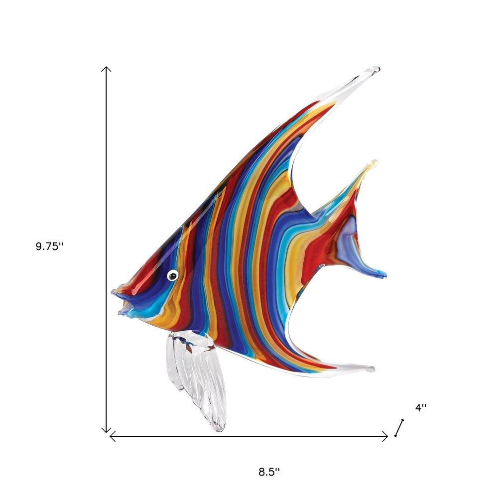 9" Blue and Red Murano Glass Fish Figurine Tabletop Sculpture