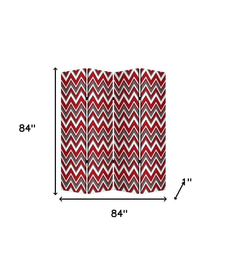 84" Red And Gray Canvas Folding Four Panel Screen Room Divider