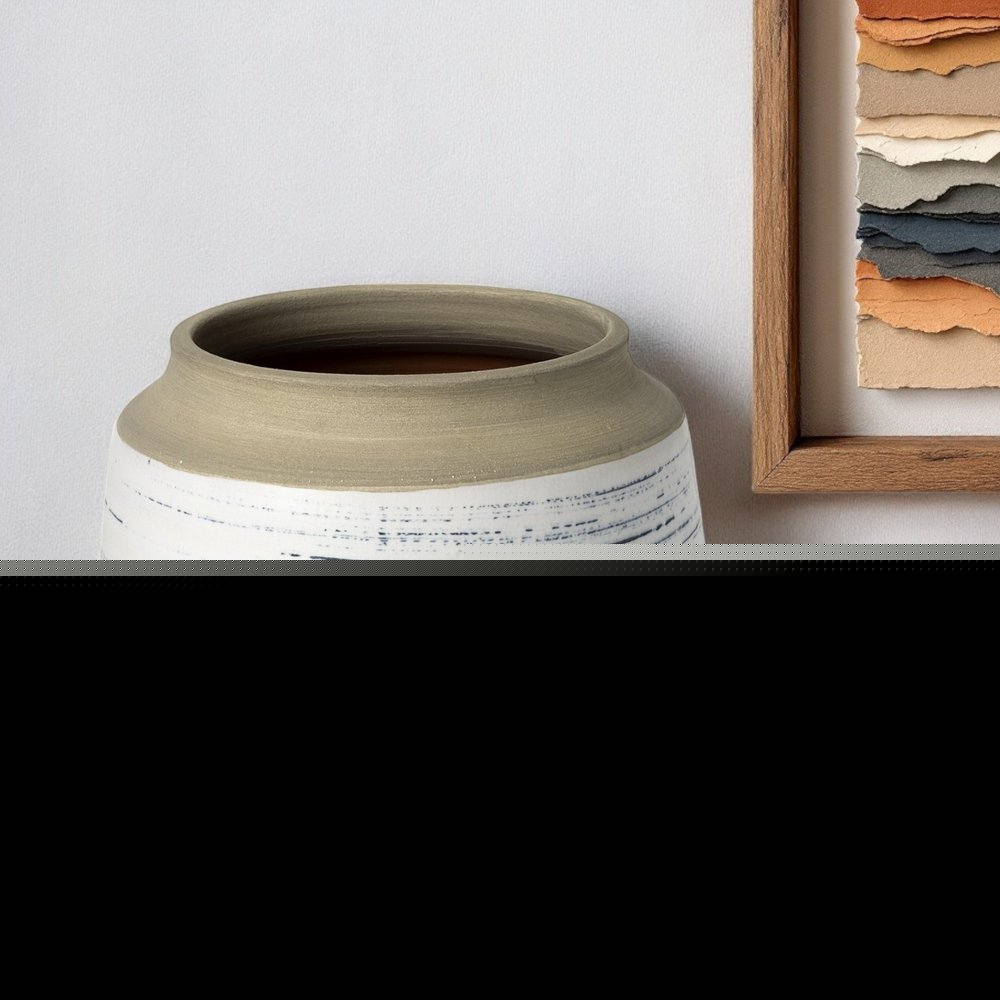 9" White Blue and Sand Abstract Cylinder Ceramic Table Vase