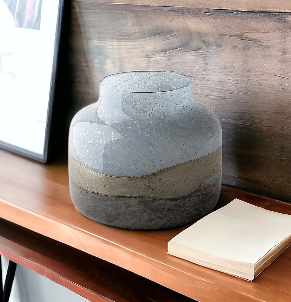 9" Blue And Brown Seeded Glass Table Vase