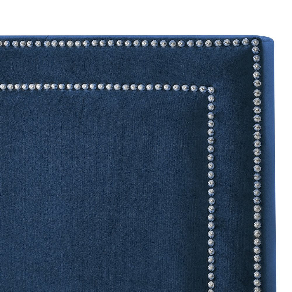 Navy Blue Solid Wood King Upholstered Velvet Bed with Nailhead Trim