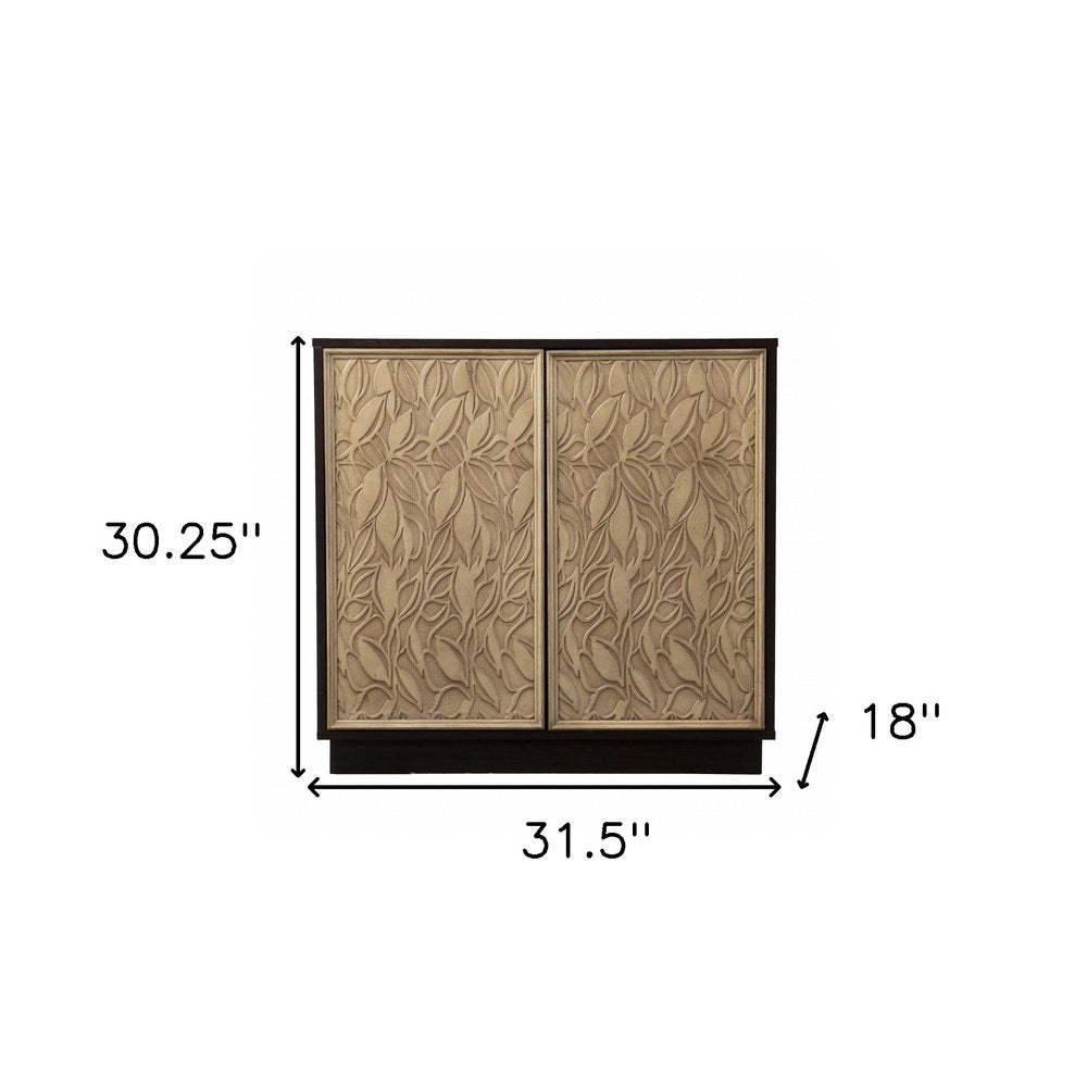 32" Dark Brown And Natural Carved Floral Sideboard with Two Doors