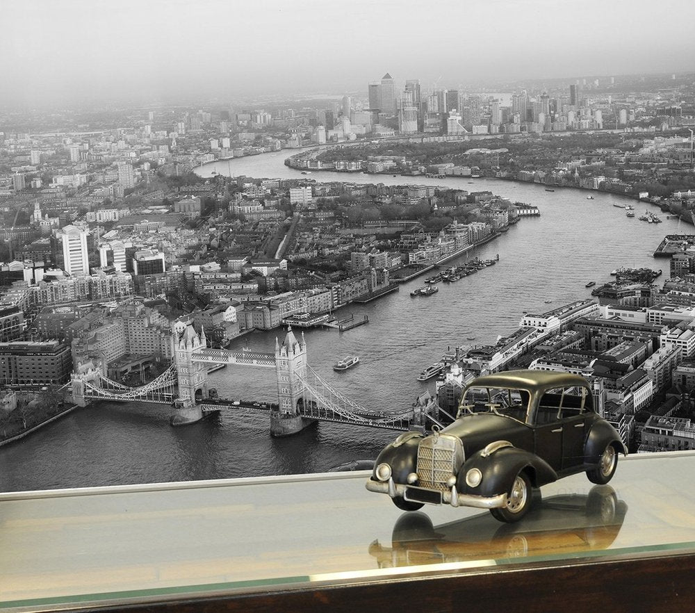 5" Gray Metal Hand Painted Model Car Tabletop Sculpture