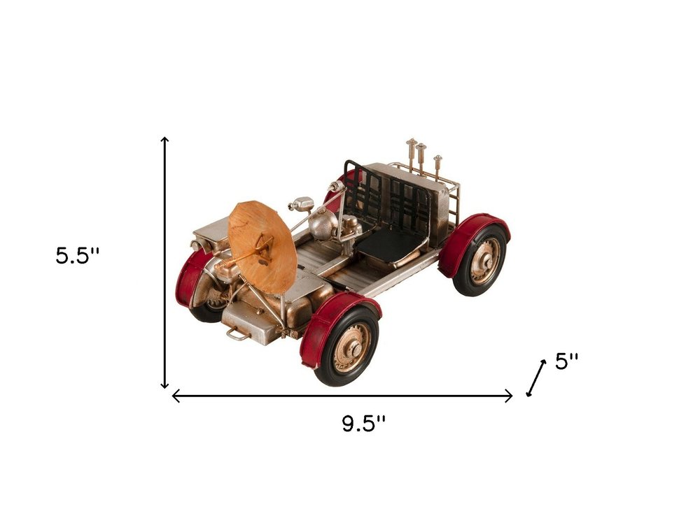 5" Red And Silver Metal Hand Painted Model Car Tabletop Sculpture