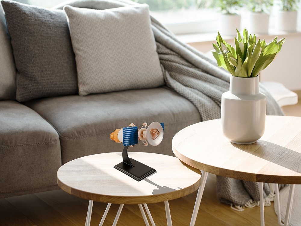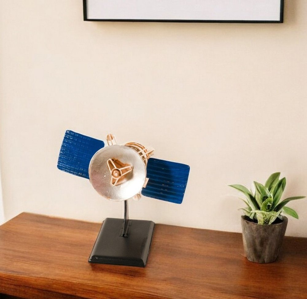 8" Blue And Yellow Metal Hand Painted Model Airplane Tabletop Sculpture
