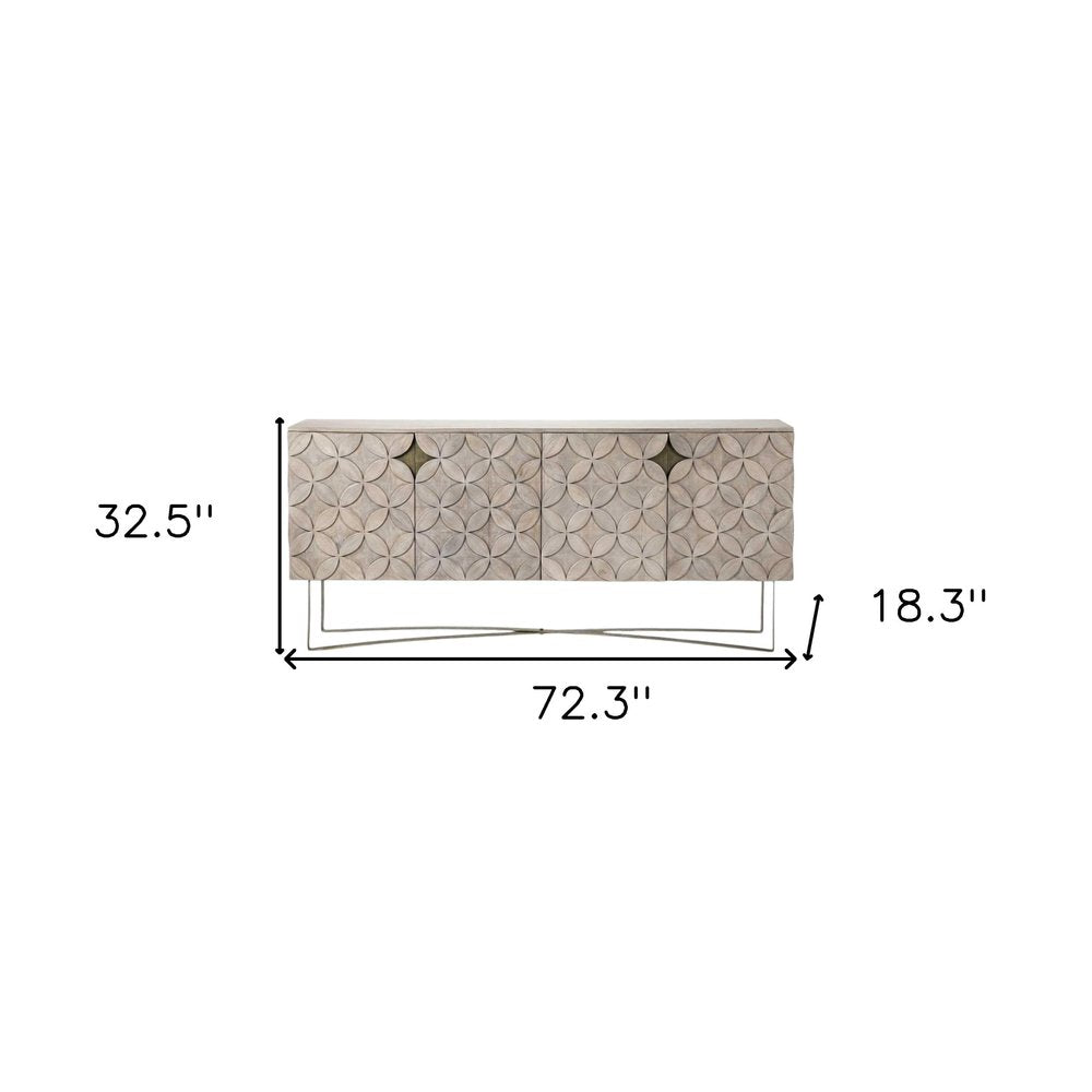 72" Light Brown Solid Wood Sideboard with Four Doors