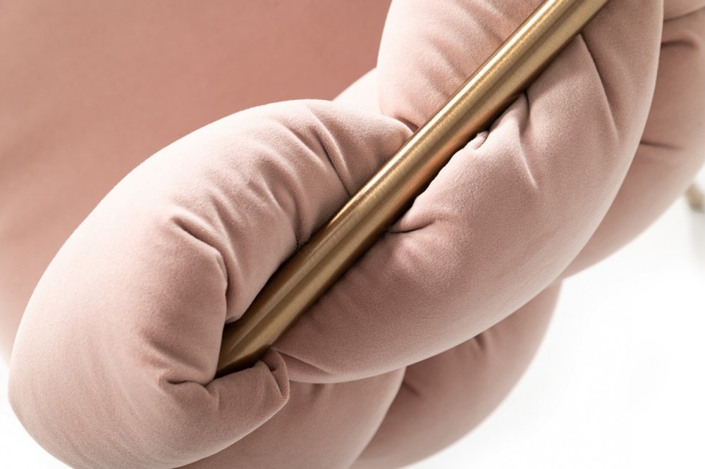 Pink and Brass Upholstered Fabric Dining Arm Chair
