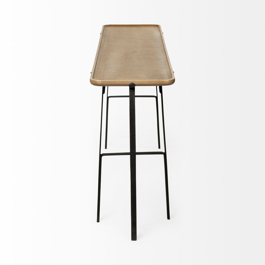 14" Brown and Black Solid Wood Trestle Console Table