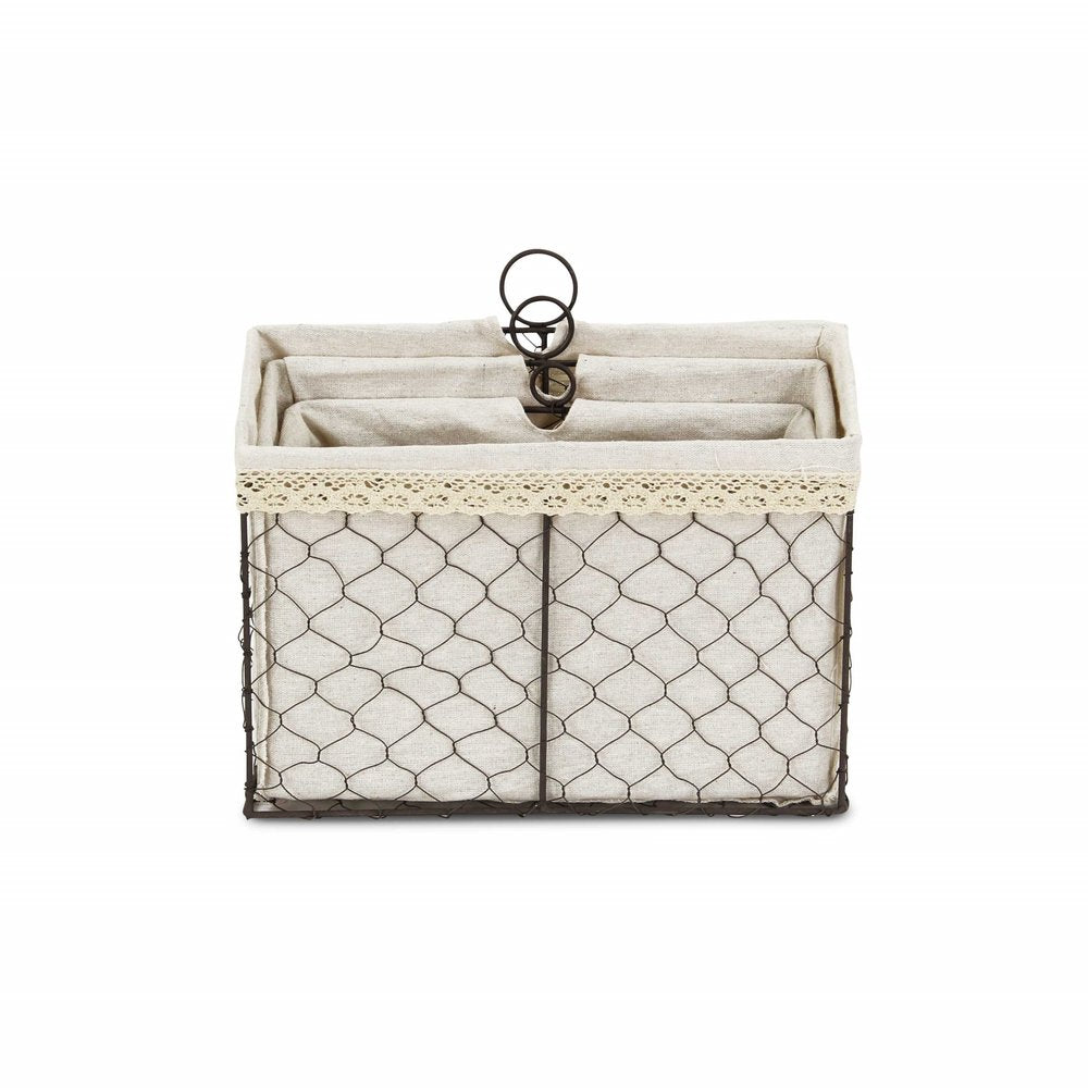 Set Of 3 Brown Linen Fabric And Line Metal Organizers