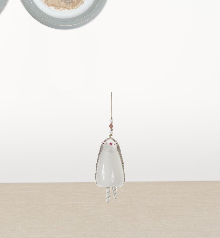 Set of Four 7" Pink And White Resin Hedgehog Model Bell Tabletop Sculpture