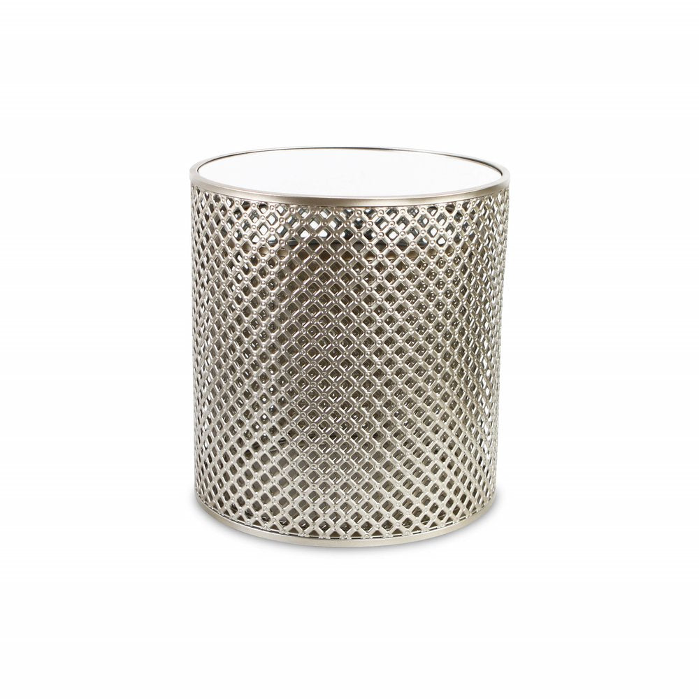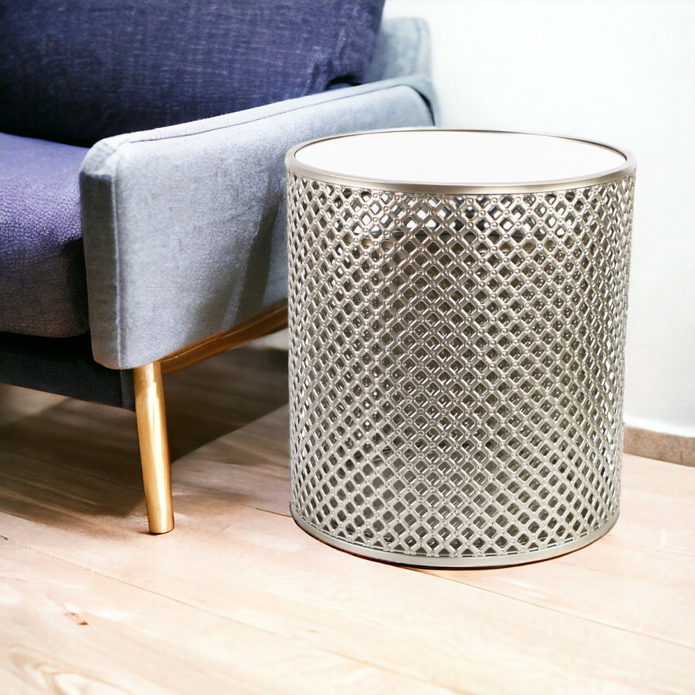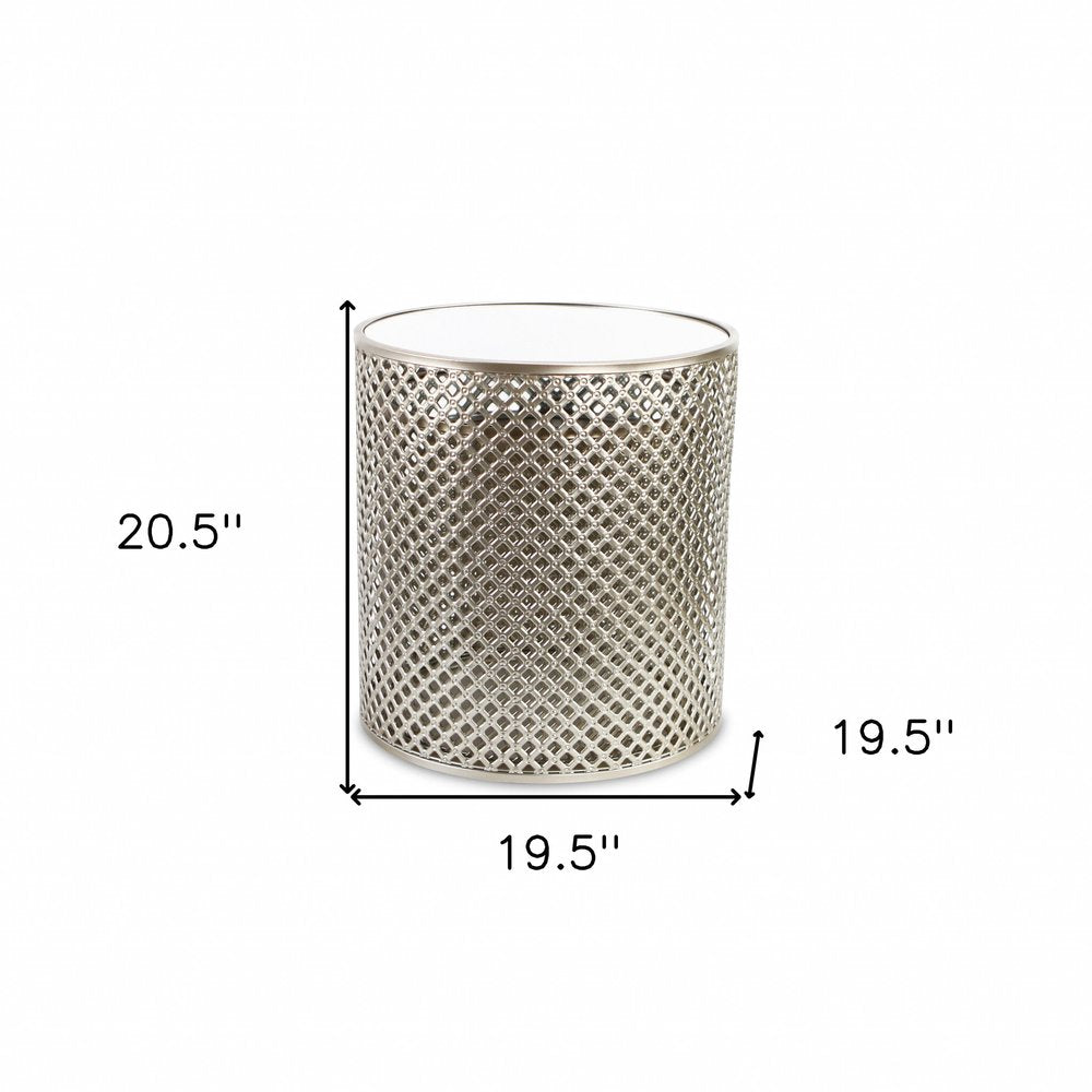 Optimize your space with the set of two 21-inch silver and white mirrored round mirrored nested tables that nest into each other easily and fashionably when not in use. The white mirrored top of this table is a nice contrast to the high quality, silver steel of the base. Reflective pieces of mirrored glass give this table a glamorous and unique look. An ideal location for placing your snacks and drinks, and a place to keep your lamp, frames, or other accessories. This versatile table is a great accent for most any room. 20.5-inch H x 19.5-inch W x 19.5-inch D
