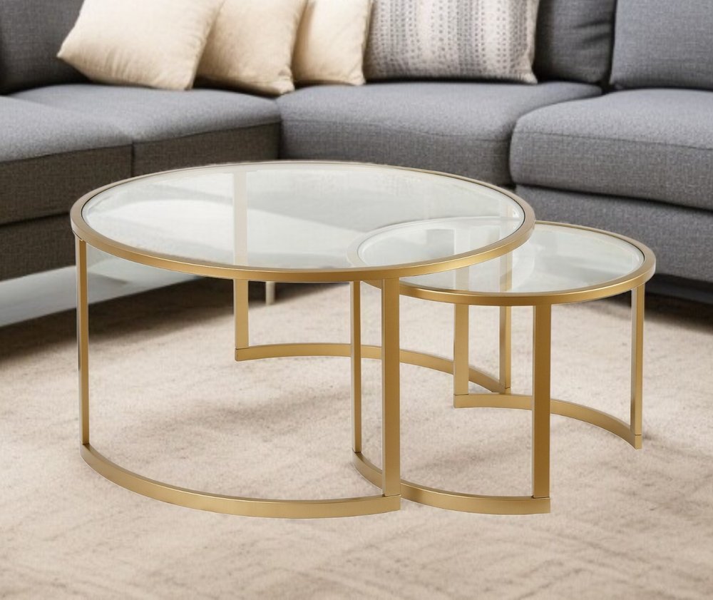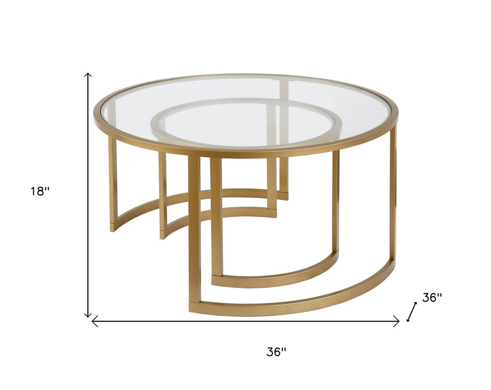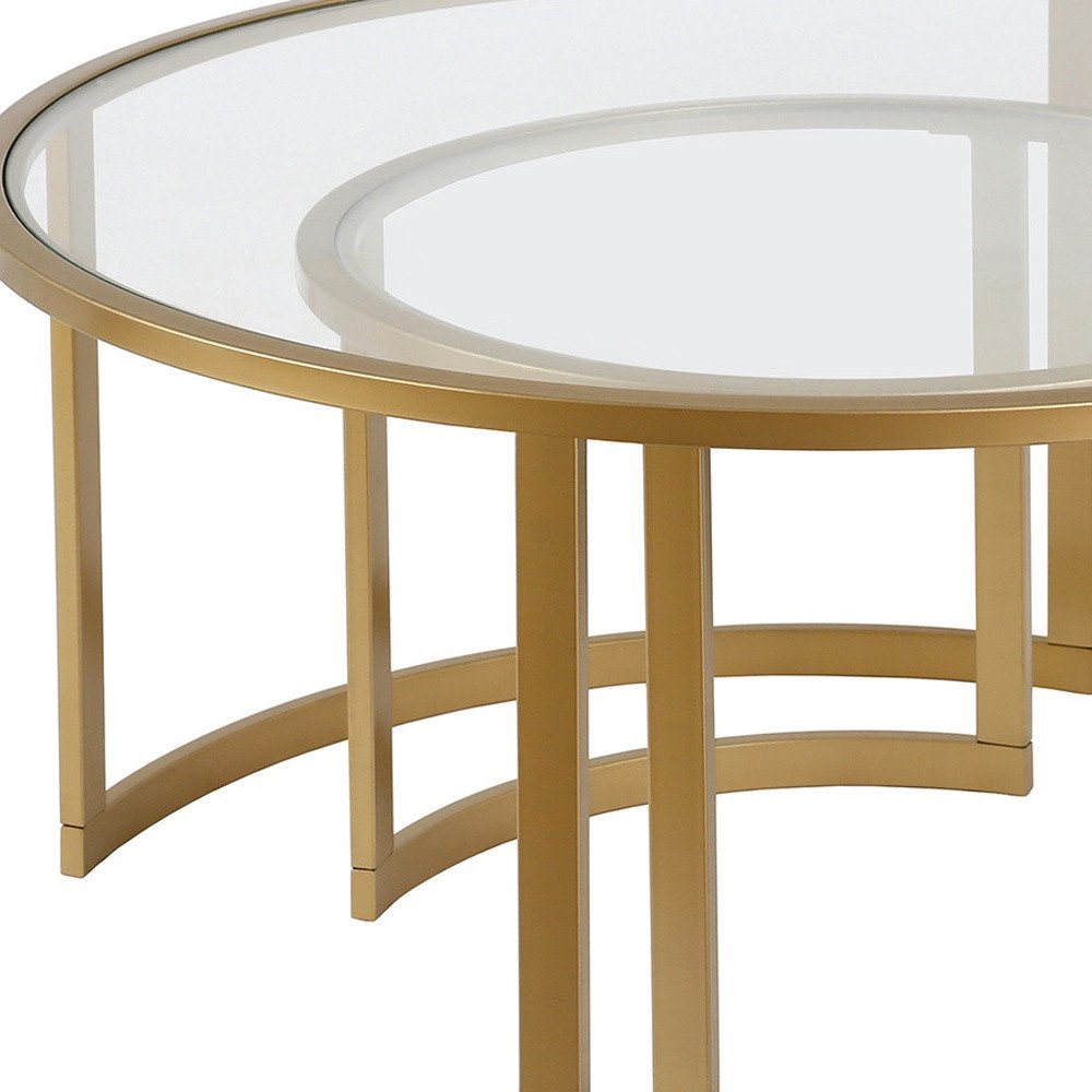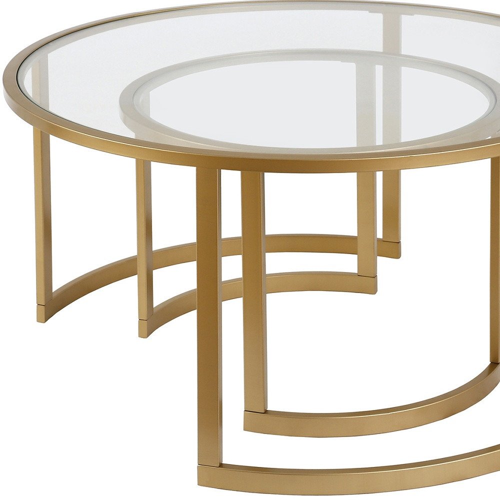 Set of Two Gold Glass And Steel Round Sled Nested Coffee Tables
