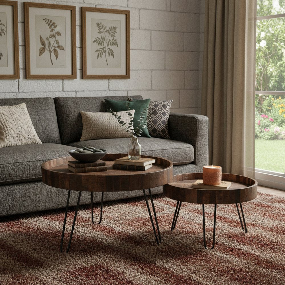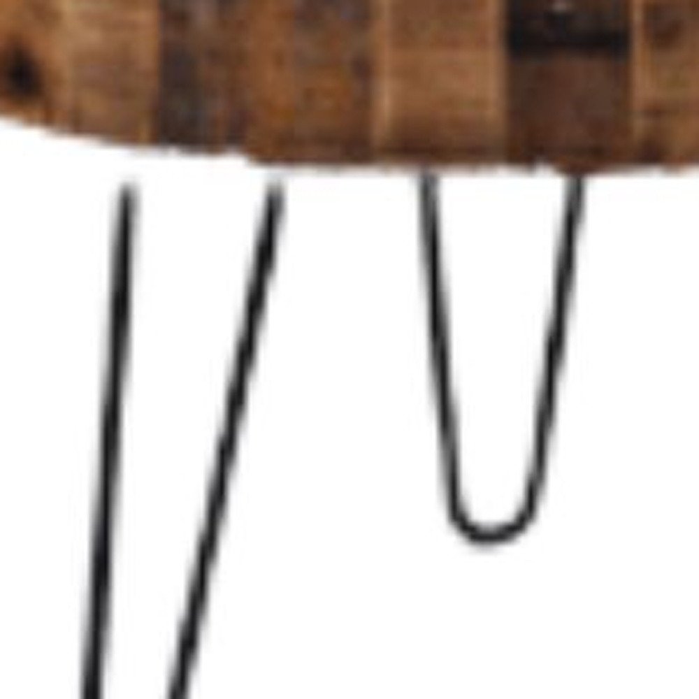 Set Of Two Black And Natural Brown Solid Wood And Iron Round End Tables