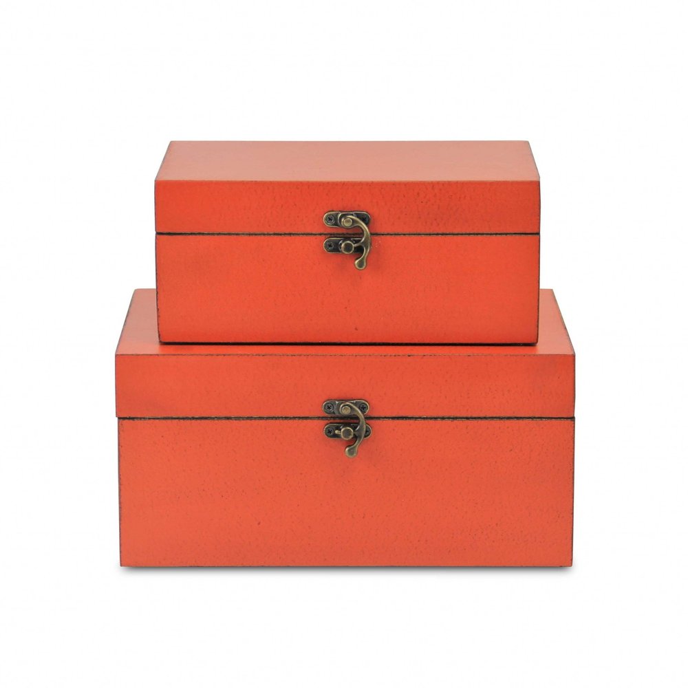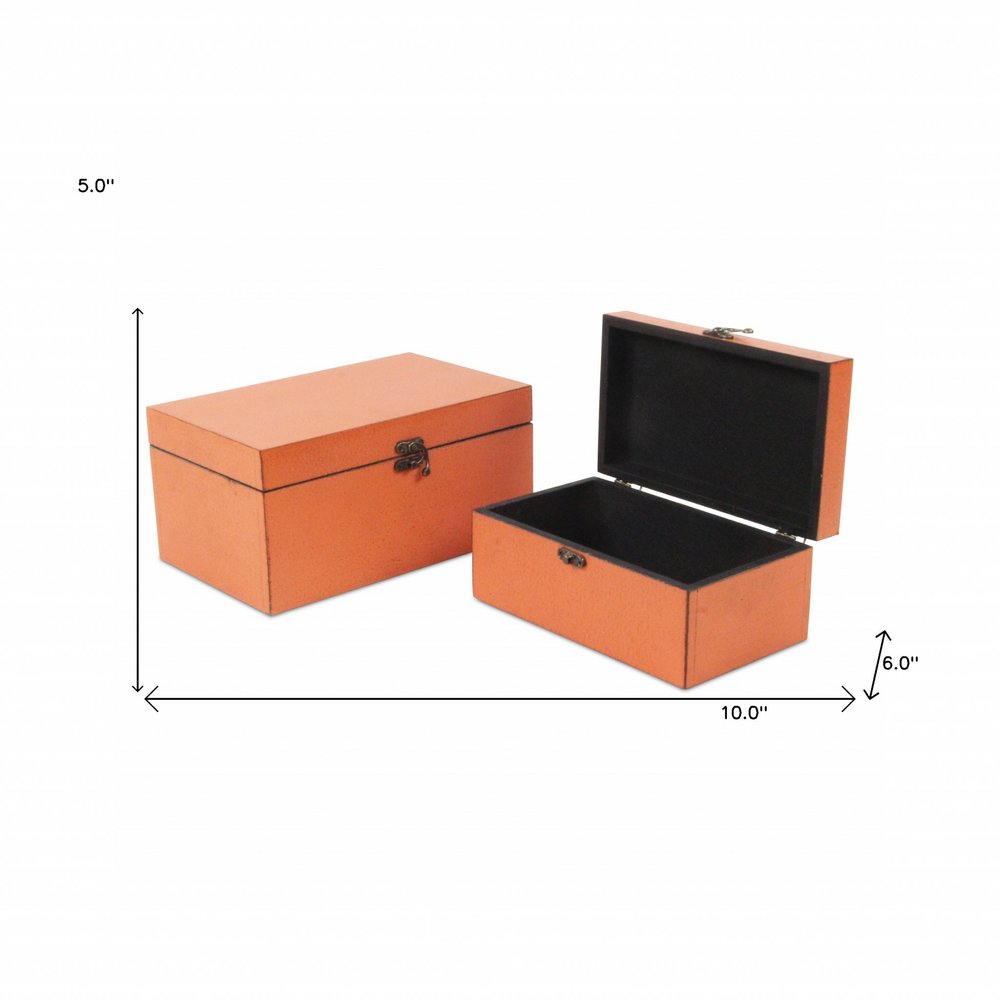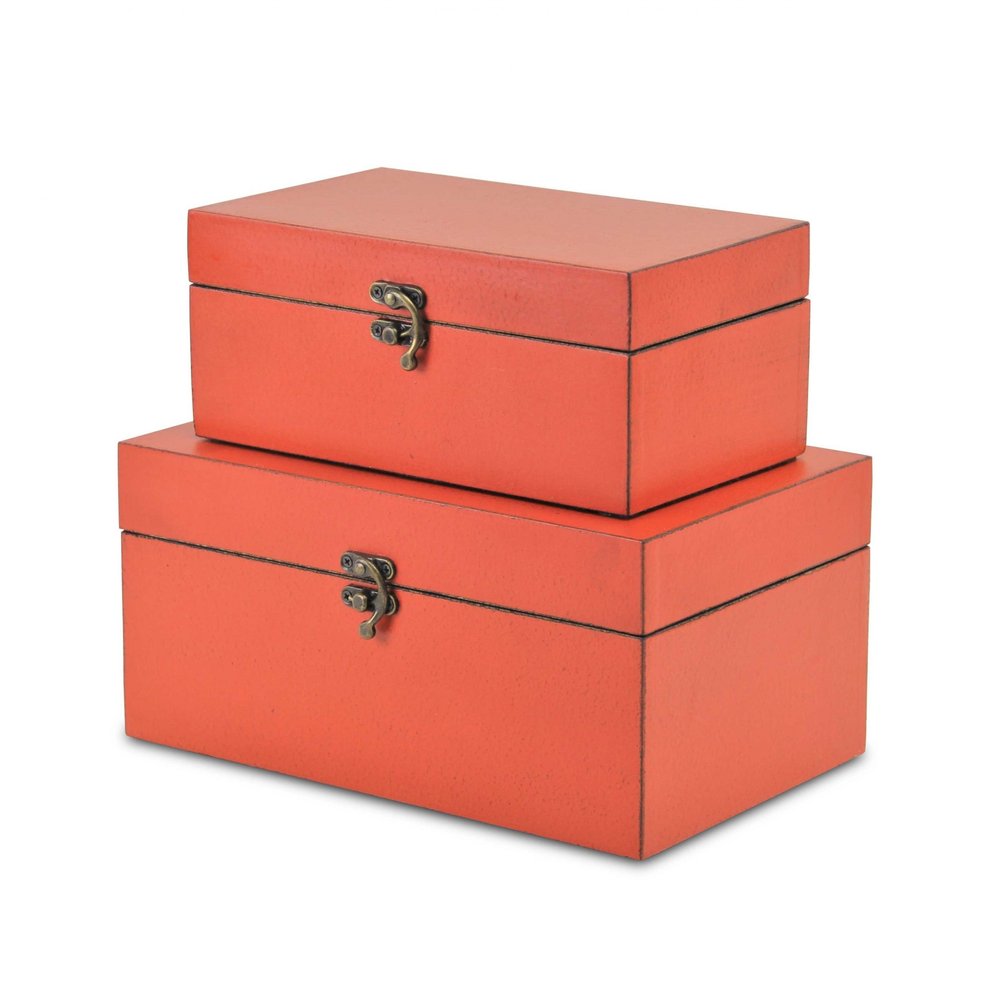 Set of Two Coral Wooden Storage Boxes