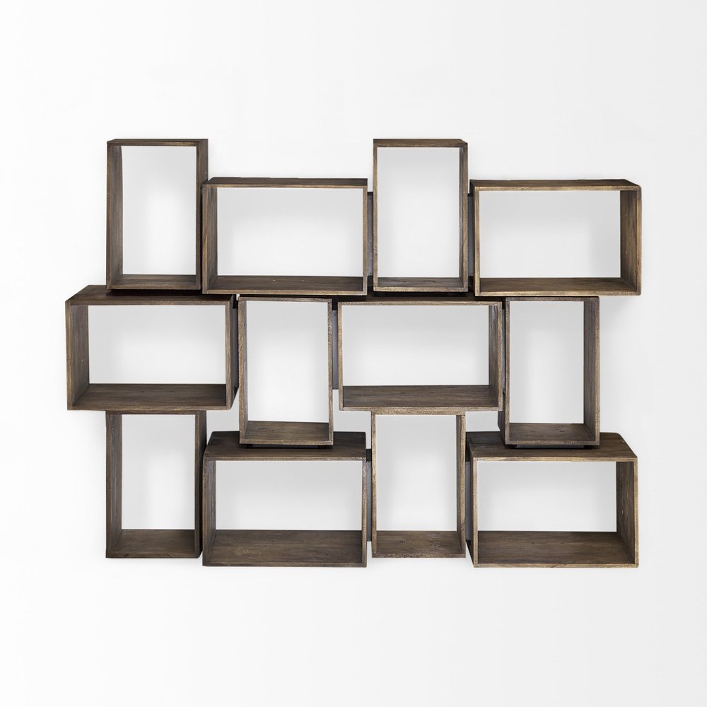 Set of Two Brown Solid and Manufactured Wood Two Tier Floating Bookcase