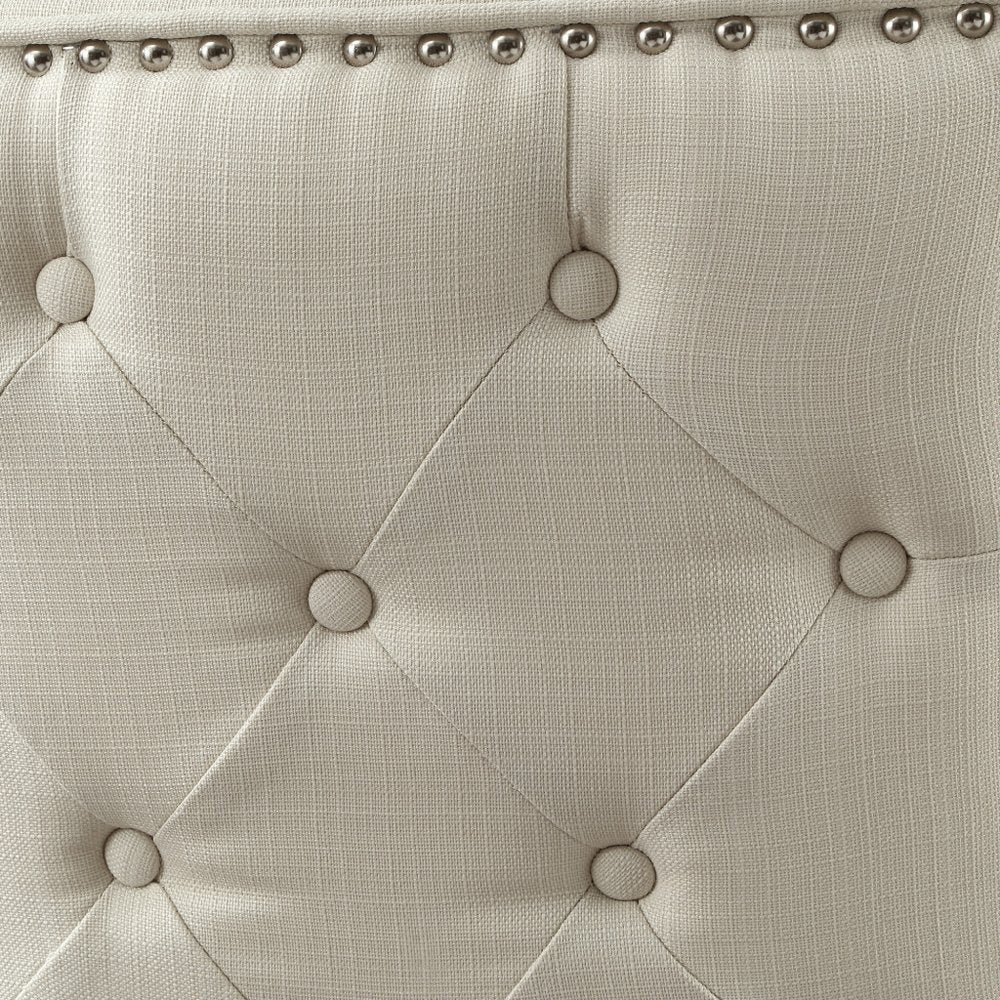 Set of Two Tufted Cream and Espresso Upholstered Linen Dining Side Chairs