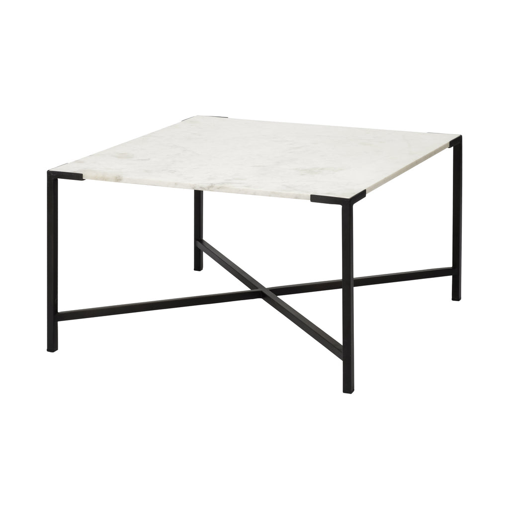30" Black And White Genuine Marble and Metal Square Cross Legs Coffee Table