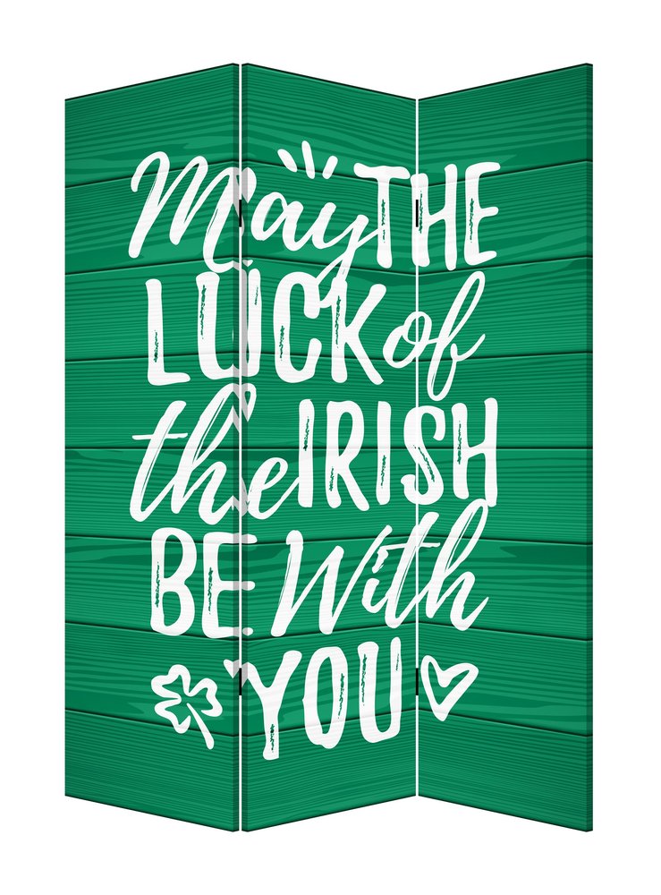 72" Green and White CanvasFolding Three Panel Screen Room Divider
