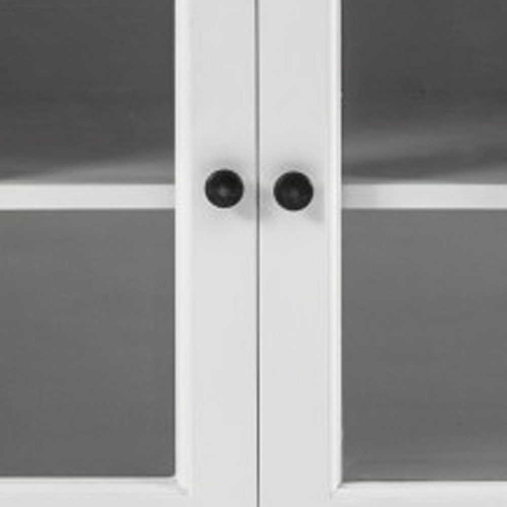 57" White Solid Wood Three Drawer Sideboard with Four Glass Doors